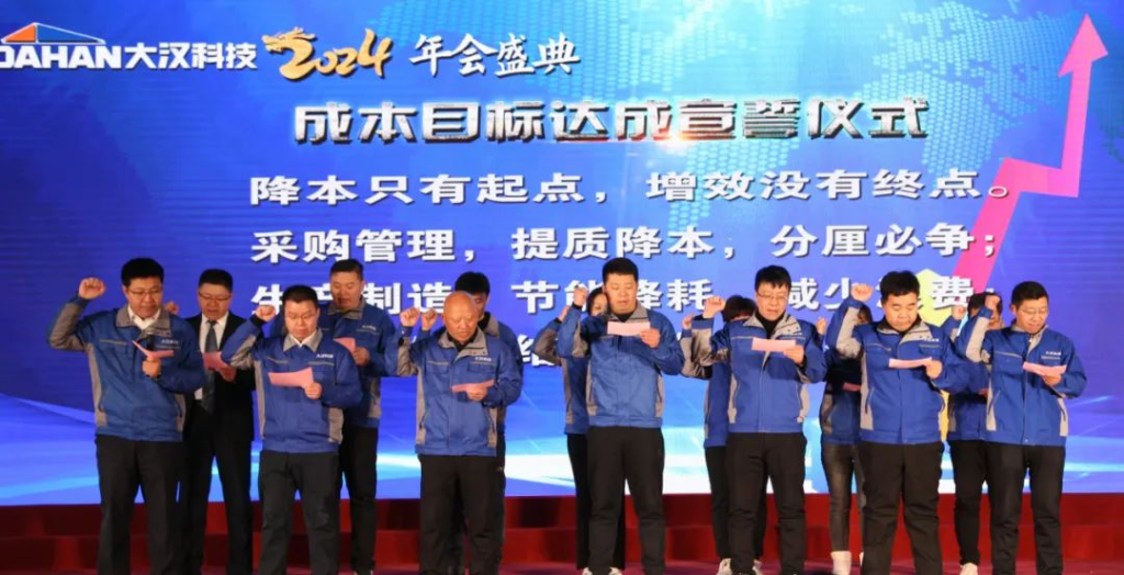 銷售、質(zhì)量、安全、成本四大體系團(tuán)隊(duì)相關(guān)代表人員舉行了慷慨激昂的目標(biāo)達(dá)成宣誓儀式。
