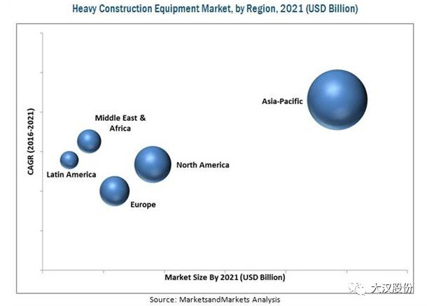 據(jù)MarketsandMarkets預測,重型建筑設備市場規(guī)模將從2016年的1291.1億美元增長到2021年的1806.6億美元,估計復合年增長率為7.0%。預計重型建筑設備市場將由于城市化程度提高、基礎設施和工業(yè)部門的大規(guī)模投資以及新興經(jīng)濟體的建設活動增加而高速增長。