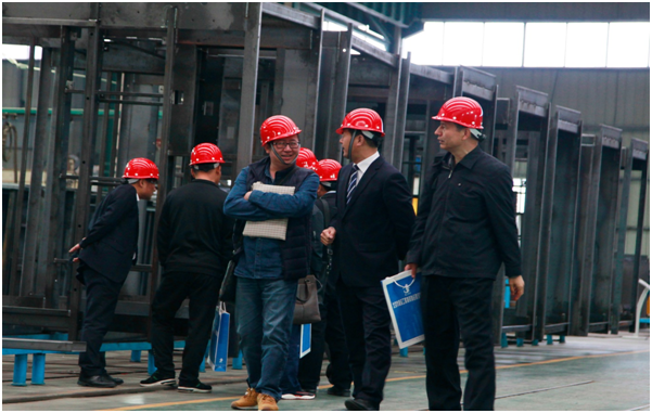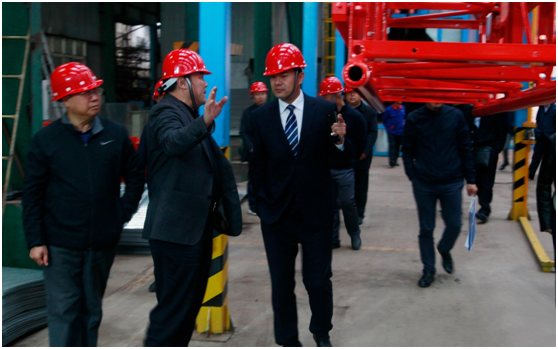 康與宙董事長(zhǎng)陪同北京住建委魏巍參觀吊籠生產(chǎn)線