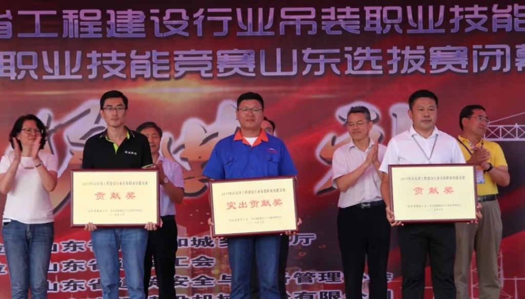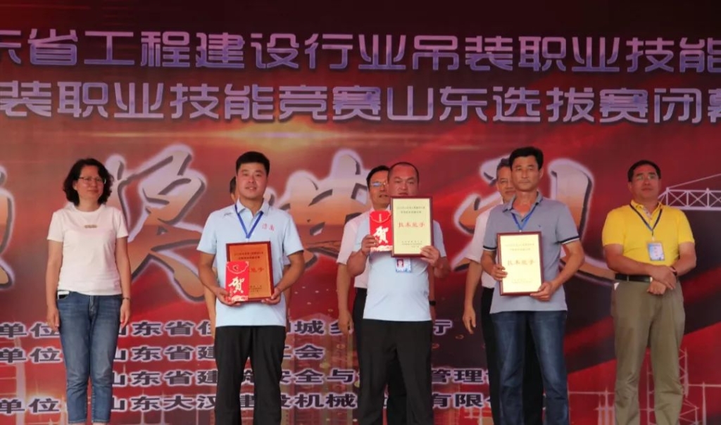 經(jīng)過激烈的角逐,“大漢杯”山東省工程建設(shè)行業(yè)吊裝職業(yè)技能決賽暨2019全國競賽山東選拔賽圓滿閉幕。16支參賽隊75名專業(yè)選手通過理論考試和實操比武,山東濟南市代表隊、青島市代表隊、日照市代表隊分別摘得技能競賽團體獎前三強。山東大漢建設(shè)機械股份有限公司獲得山東省建設(shè)工會、山東省建筑安全與設(shè)備管理協(xié)會頒發(fā)的“突出貢獻獎”。來自濟南市代表隊的李寶順從參賽的眾多塔機頂尖高手脫穎而出,憑借精湛的技術(shù)和穩(wěn)定的臨場發(fā)揮,摘得本此吊裝大賽第一名的桂冠,并獲得由山東省總工會授予的“山東省五一勞動獎?wù)隆?;濟南市代表隊的劉順卿、董波,日照市代表隊的李高華分別獲得二等獎;青島市代表隊的馬云勝等15名選手獲得三等獎。