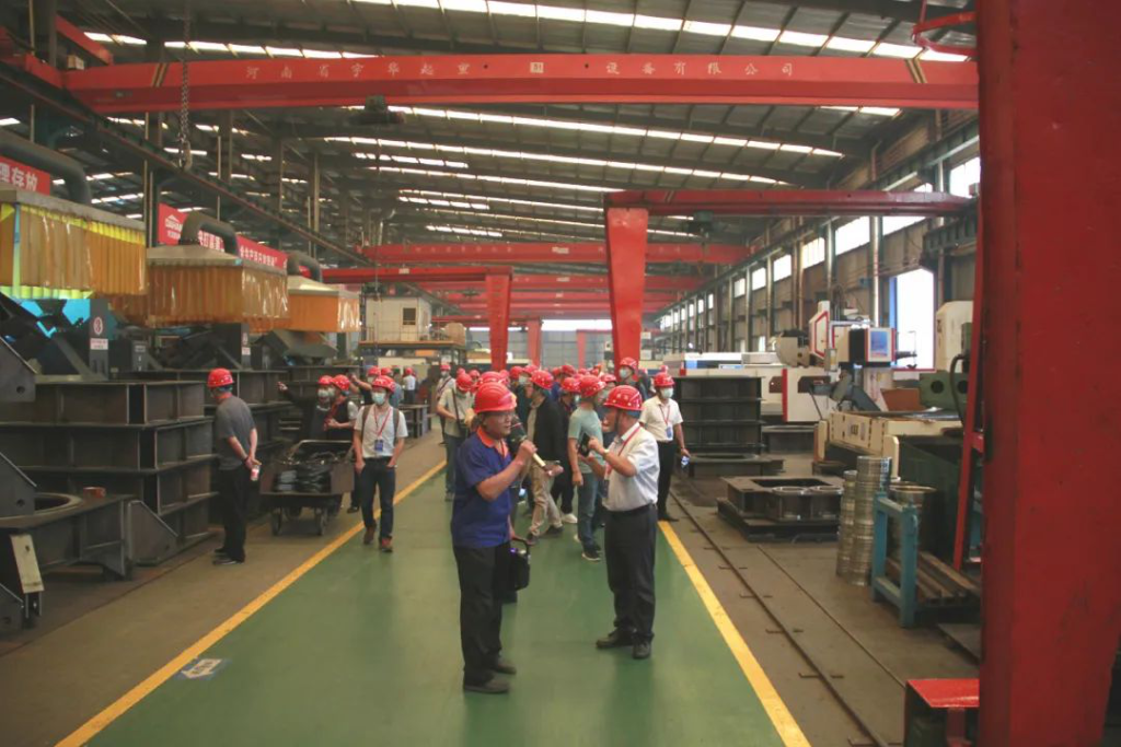 會(huì)議第二天,200余位參會(huì)嘉賓參觀了大漢科技股份公司投資4億元新建的智能化塔機(jī)、升降機(jī)生產(chǎn)線,一系列新產(chǎn)品及批量化高性價(jià)比建筑起重機(jī)械智能化生產(chǎn)制造,并現(xiàn)場(chǎng)觀摩了7025平頭塔機(jī)140%-150%靜載實(shí)驗(yàn),大漢科技新推出的H系列平頭塔機(jī),設(shè)計(jì)標(biāo)準(zhǔn)對(duì)標(biāo)國(guó)際標(biāo)準(zhǔn),靜載和動(dòng)載型式試驗(yàn)均高于國(guó)家標(biāo)準(zhǔn),以精工制造和高可靠性為租賃行業(yè)安全發(fā)展保駕護(hù)航。大漢科技逐步投產(chǎn)的綠色智能化工廠擁有七條自動(dòng)化生產(chǎn)線,起重行業(yè)內(nèi)首次運(yùn)行的電泳噴粉涂裝線;100多臺(tái)國(guó)際知名品牌工業(yè)焊接機(jī)器人;20多套數(shù)控加工中心;多臺(tái)板材、型材激光切割機(jī)等先進(jìn)設(shè)備;并集成MES控制系統(tǒng),實(shí)現(xiàn)工藝參數(shù)實(shí)時(shí)監(jiān)測(cè),氣體、焊材等易耗品統(tǒng)計(jì)分析功能,智能化水平、生產(chǎn)效率和信息化管理能力將獲得極大提升。