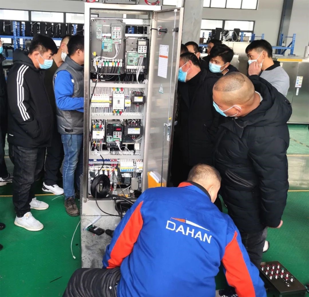 培訓期間,參觀了電氣車間,電氣高級工程師講解了大漢科技自主研發(fā)的升降機一體機流水線及檢驗調(diào)試系統(tǒng)、線束線纜全自動加工機、塔機電控加工流水線、塔機電控整機調(diào)試。在員工體驗培訓區(qū),電氣工程師通過現(xiàn)場實物,一一解答客戶人員工作中的疑難問題,提高客戶人員工作中的實戰(zhàn)水平。